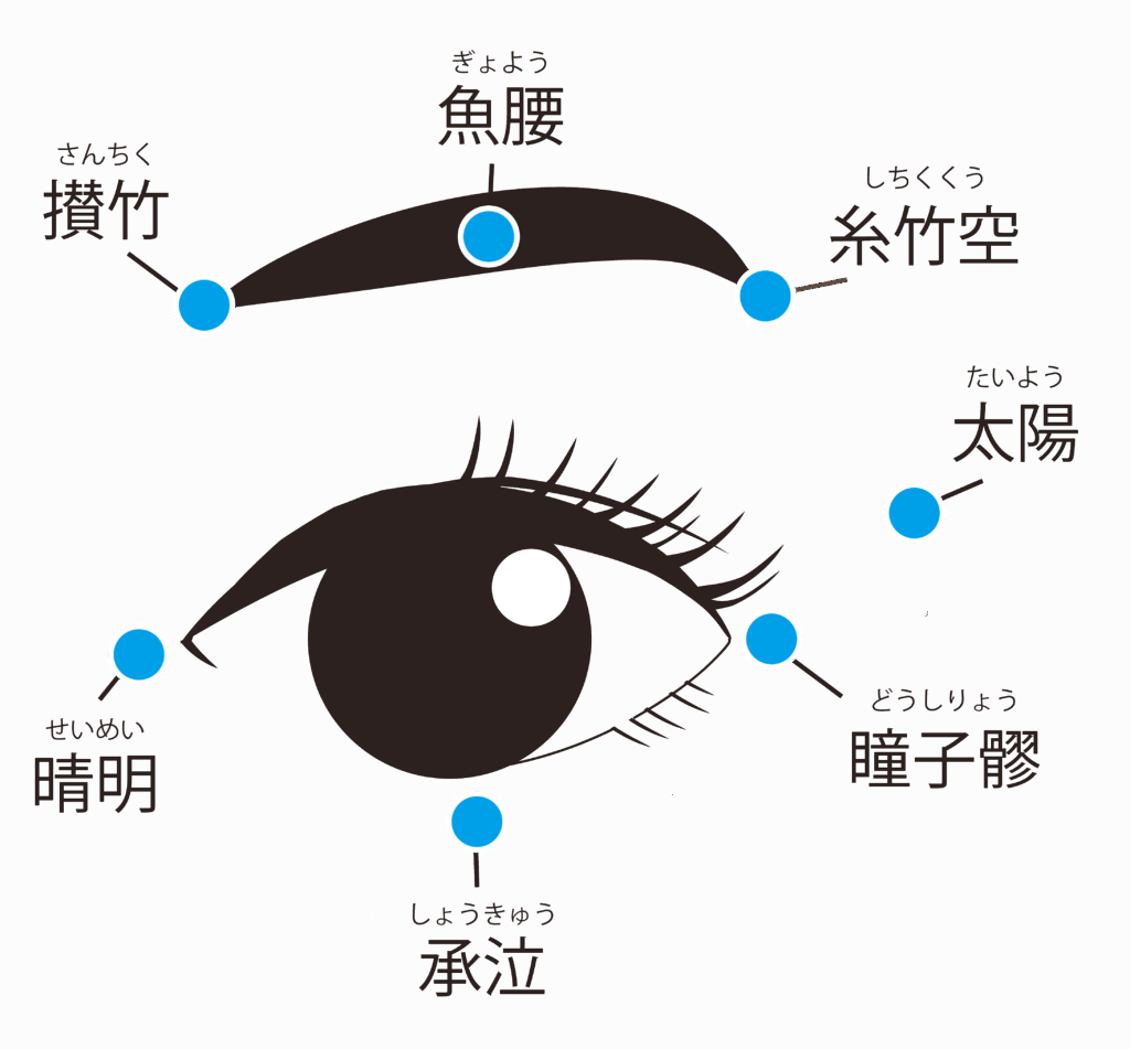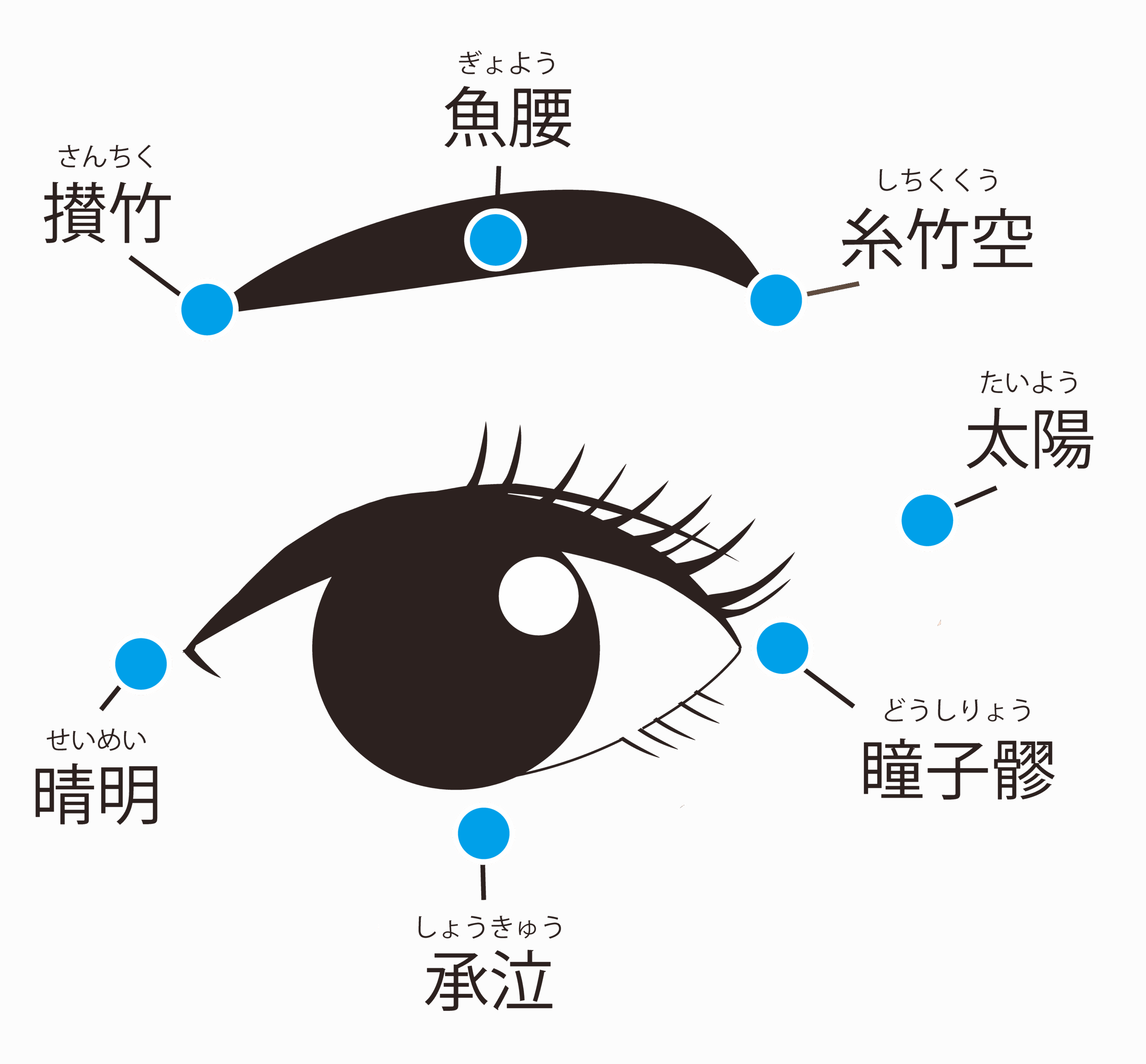 研究で使用されたツボ(経穴)は、目の周りにある以下の場所です:
