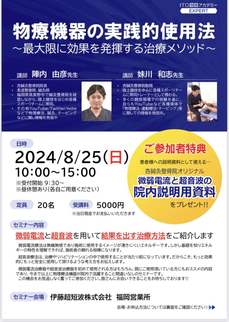ちなみに当院の妹川は全国各地で超音波治療器の正しい使い方、効果的な使い方の講師をしております。