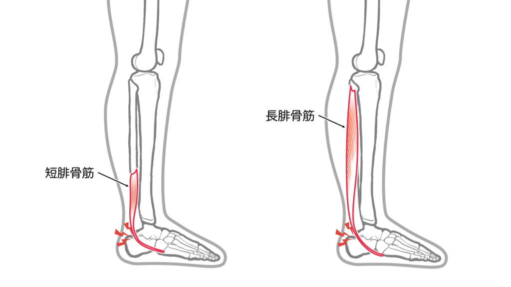 また、過去に足首の捻挫をした方は足首が不安定になっていてそれを補うために腓骨筋が頑張りすぎてしまい結果として腱に負担がかかってしまうこともあるんですね。