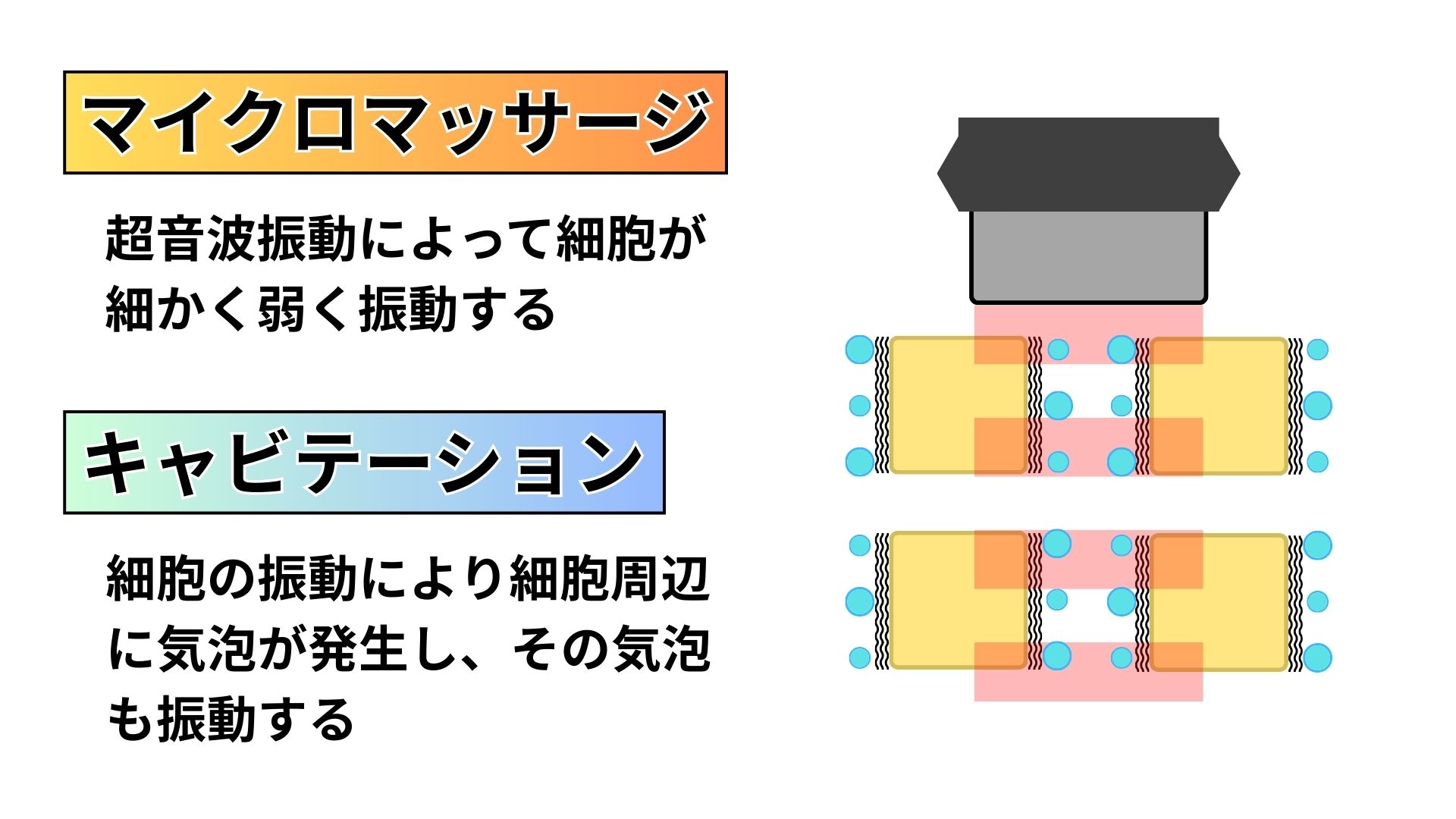 LIPUSやその他の超音波治療器での非温熱効果の施術を受ける時には『今は身体の中ではこのように変化が起きているんだ』とイメージをしてください。