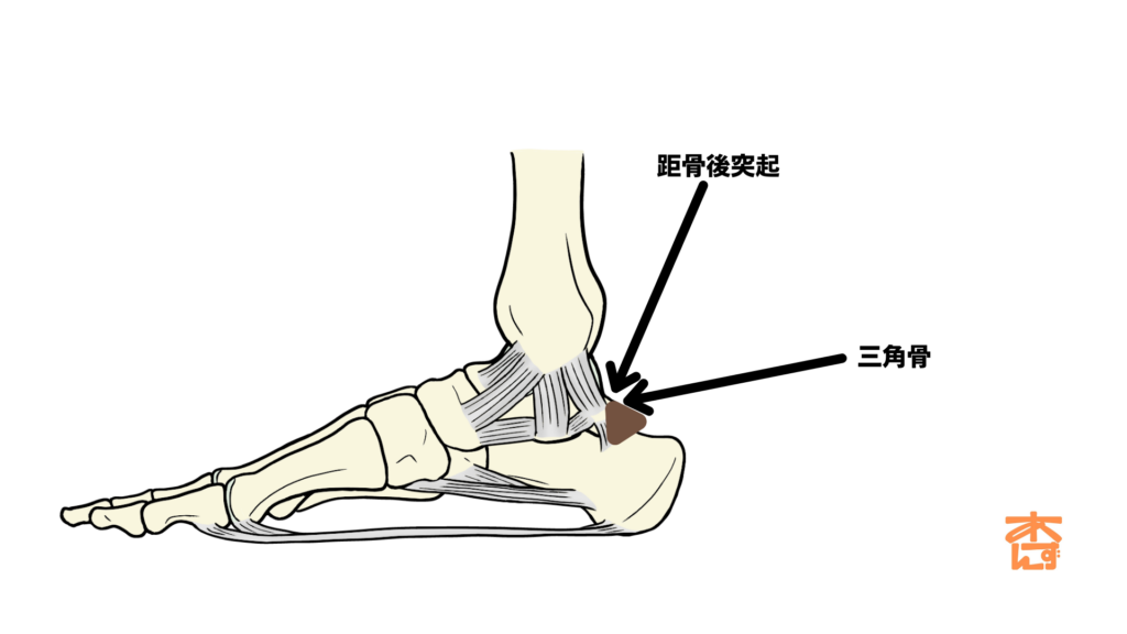 - 三角骨: 距骨(足首の骨)の後ろにできる余分な骨で、約10人に1人の割合で見られると言われています