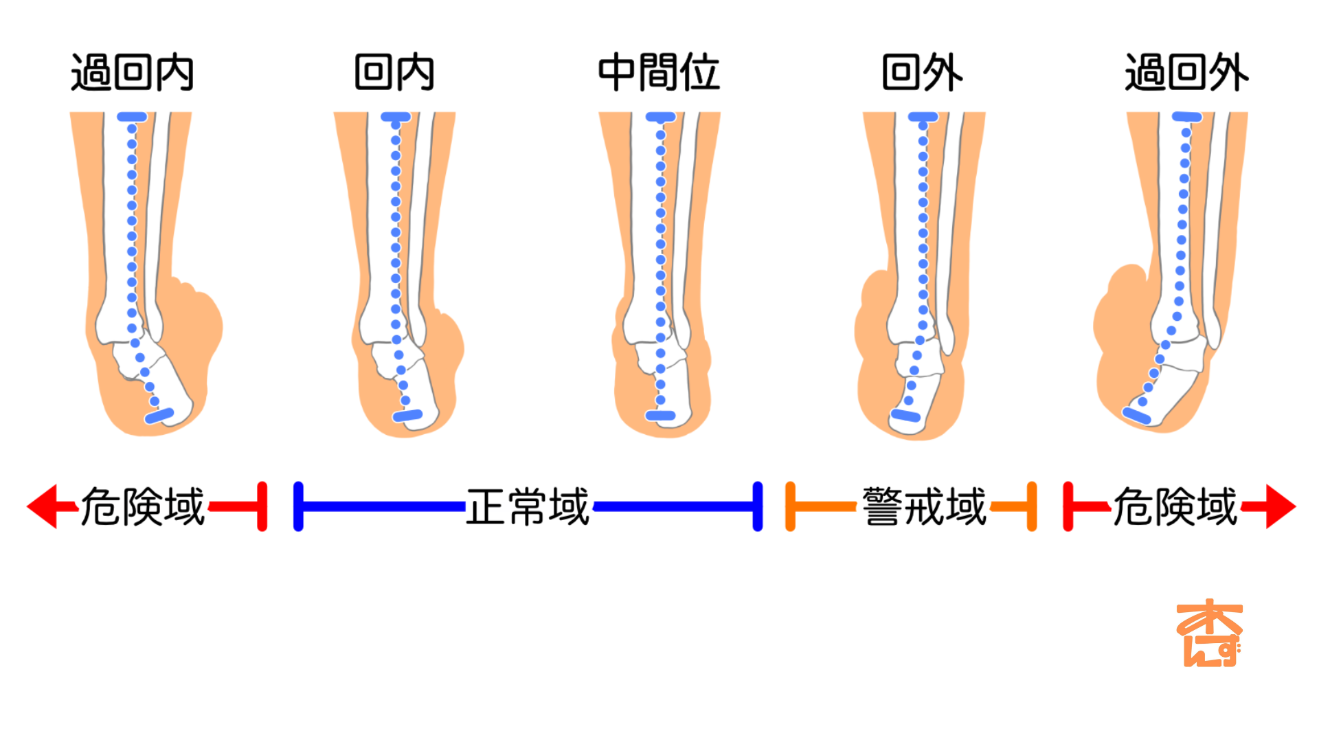 研究では、内反(足が内側に倒れるのを防ぐ)を抑制するキネシオテーピングが有効であることが示されています。5センチメートル幅のキネシオテープと7.5センチメートル幅のバンテージを使います。