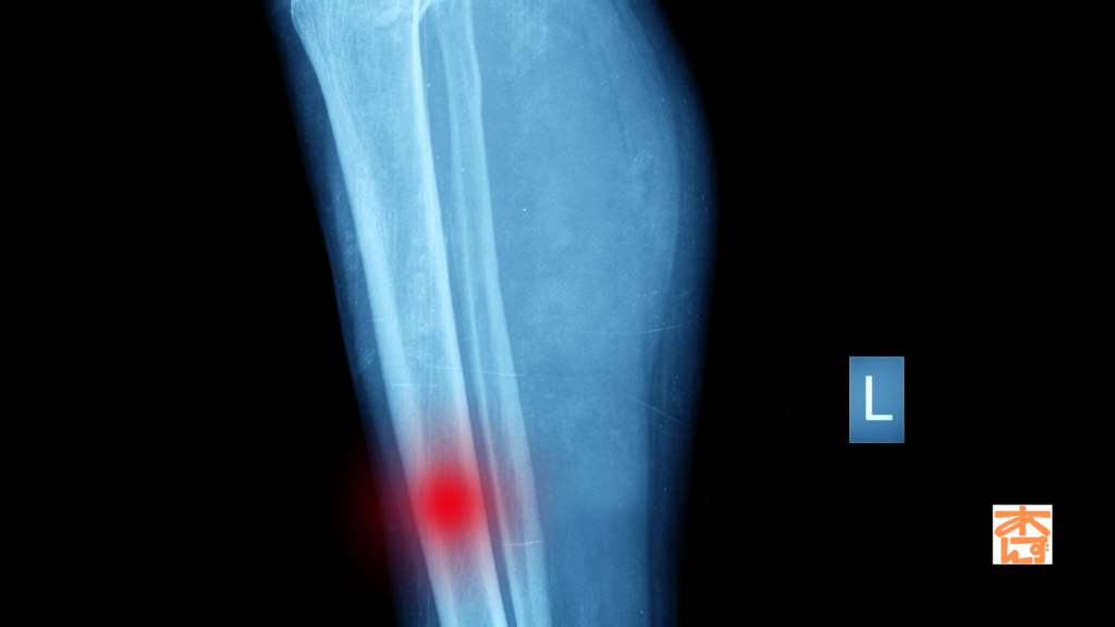 疲労骨折は、骨そのものに細かいひびが入った状態です。小さなストレスが繰り返し加わることで、徐々に骨にダメージが蓄積されて起こります。