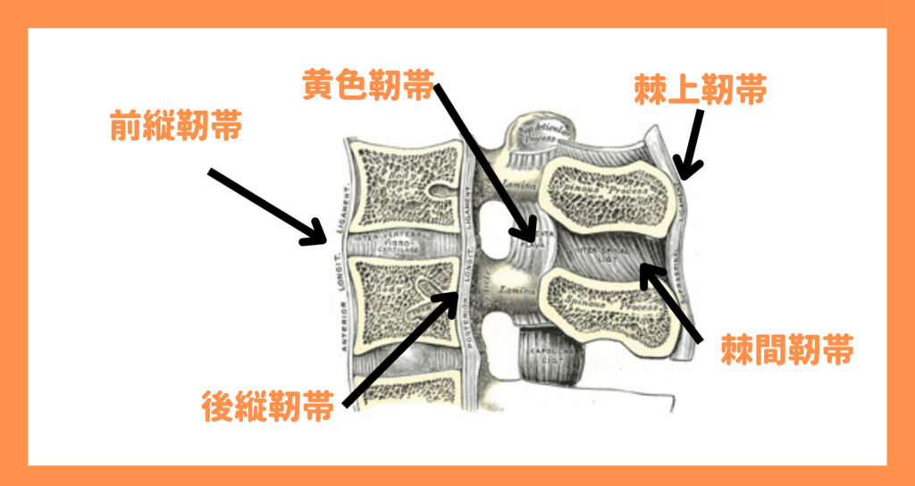 靭帯は、硬めのゴムバンドのようなもので、背骨を安定させる大切な働きをしています。