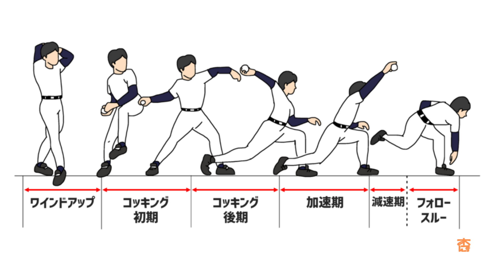 投球動作は5つの段階に分けられます。