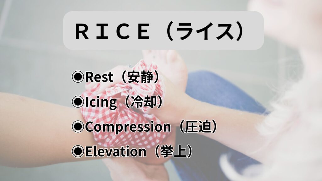 RICEは応急処置を行う上で一番基本となる形でとても重要なので、移り変わりと合わせて順番に知っていきましょう。