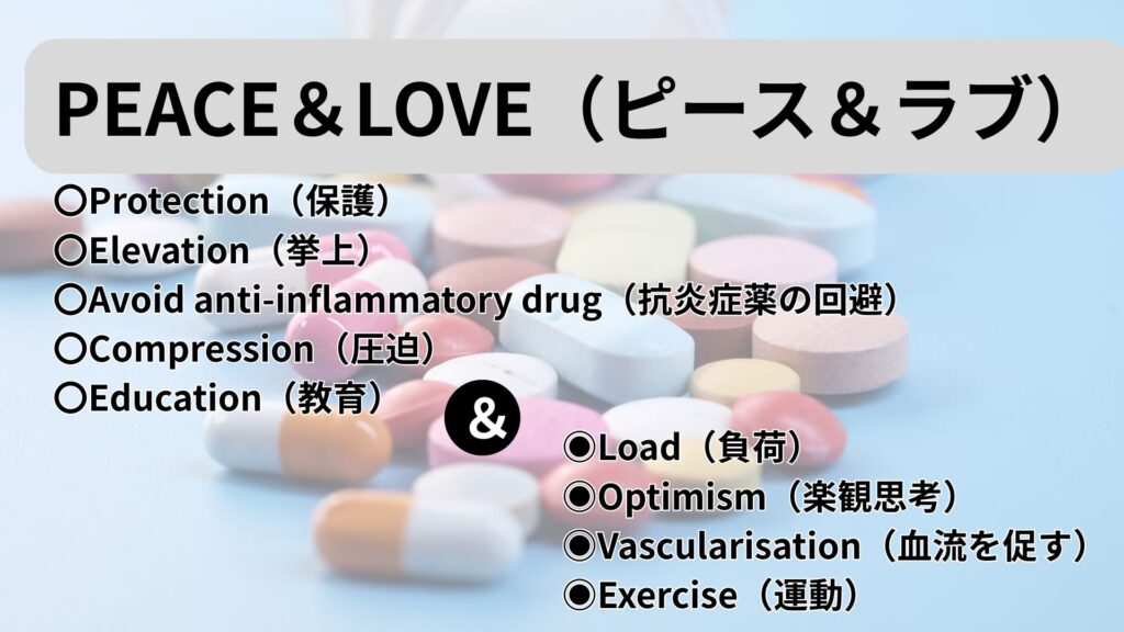 LOVEに関してはPEACEが過ぎた後の期間に行っていくので、受傷から数日たったくらいから開始していくと考えてください。
