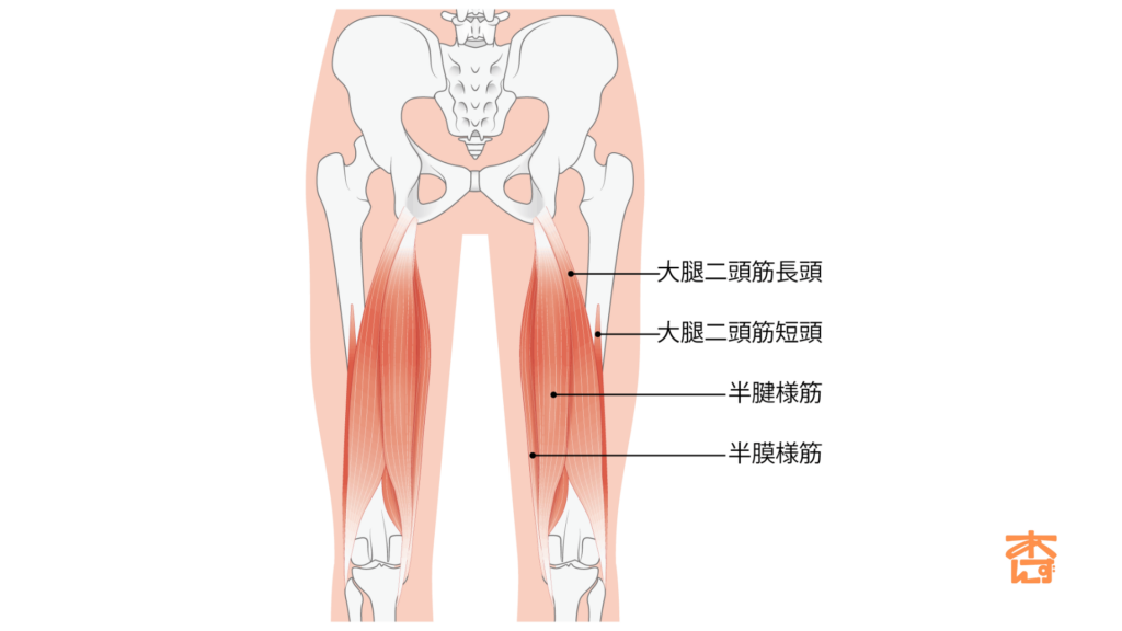 ハムストリングは、太もも裏にある3つの筋肉(大腿二頭筋・半腱様筋・半膜様筋)からなる筋肉群です。