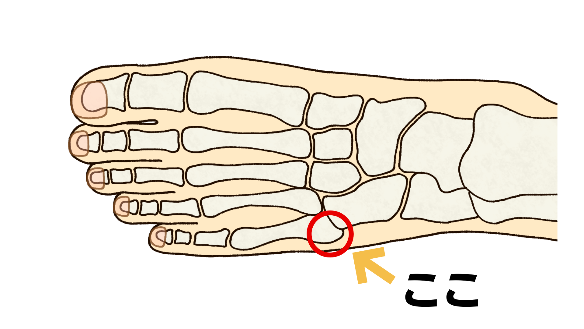 イズリン病は、足の小指側の甲の部分、専門的には「第5中足骨基部」と呼ばれる場所に痛みが出る病気です。1912年にイズリンという医師によって報告されたため、この名前がついています。
