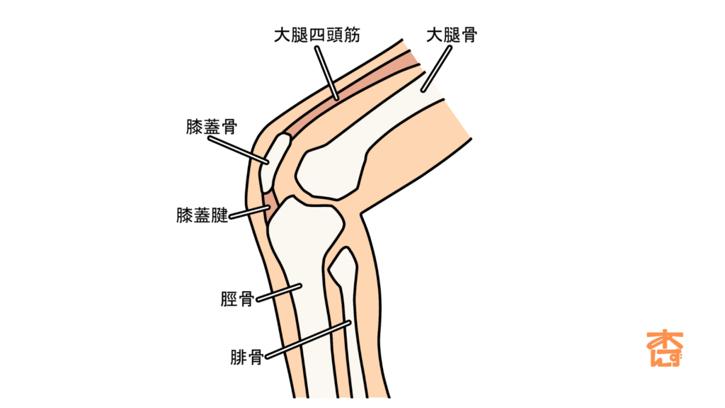 膝のお皿(膝蓋骨)とすねの骨をつないでいる腱があります。