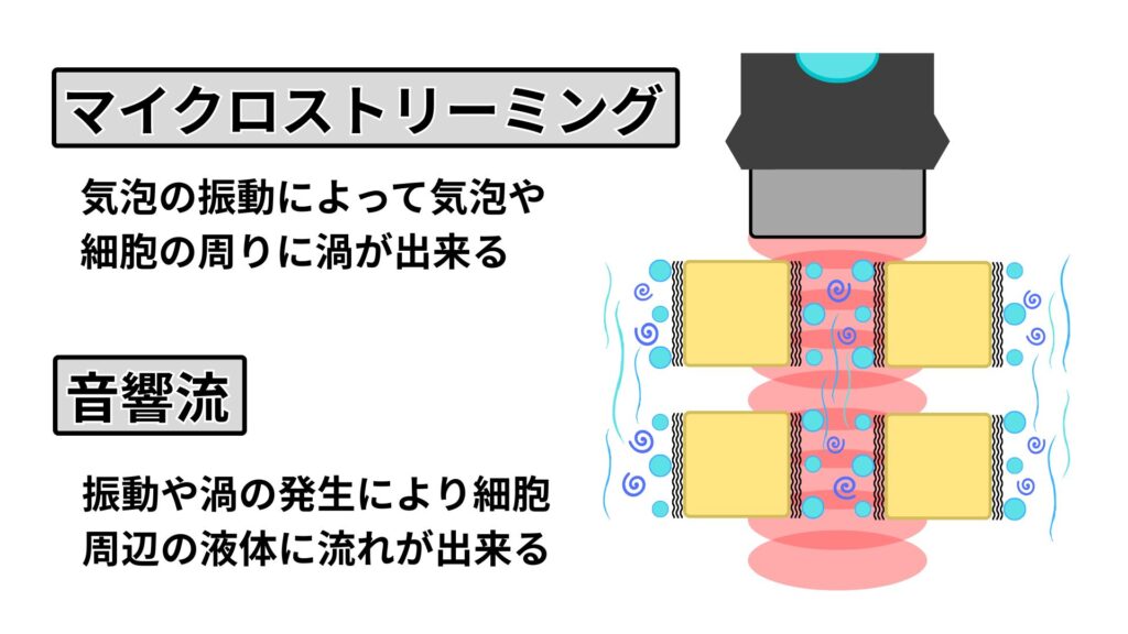 ⇒気泡の振動により気泡周辺の水分(細胞外液)に渦が発生する《マイクロストリーミング》