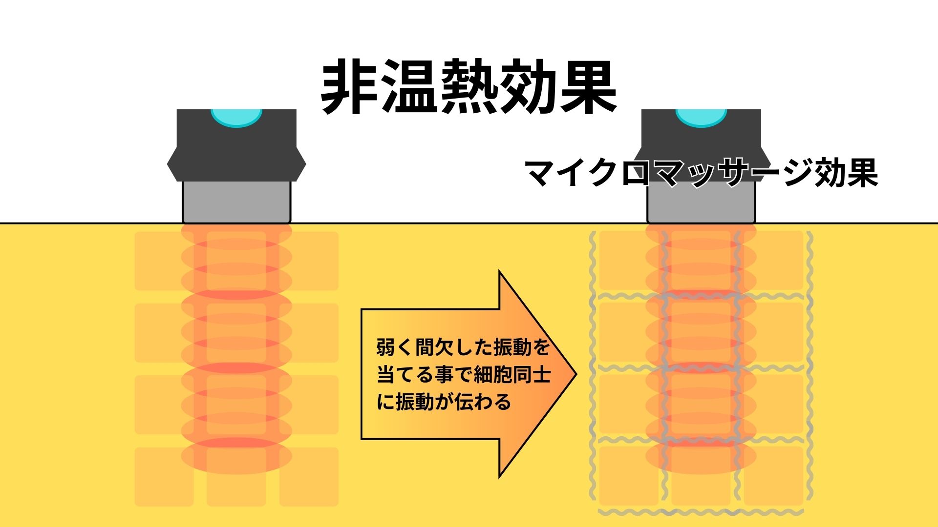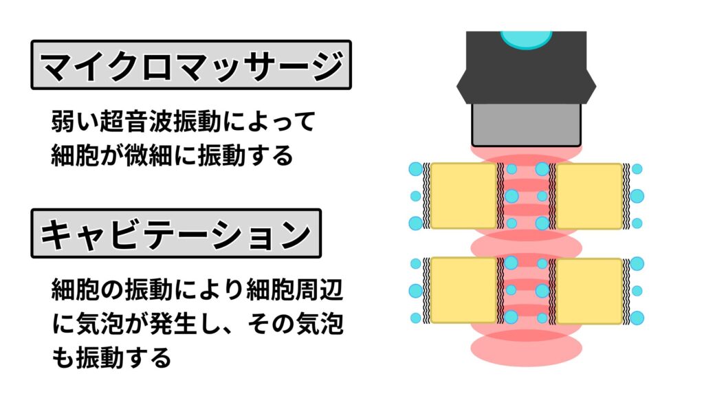 超音波振動が身体に照射される事によって、体内では細胞や組織が弱く細かく振動する