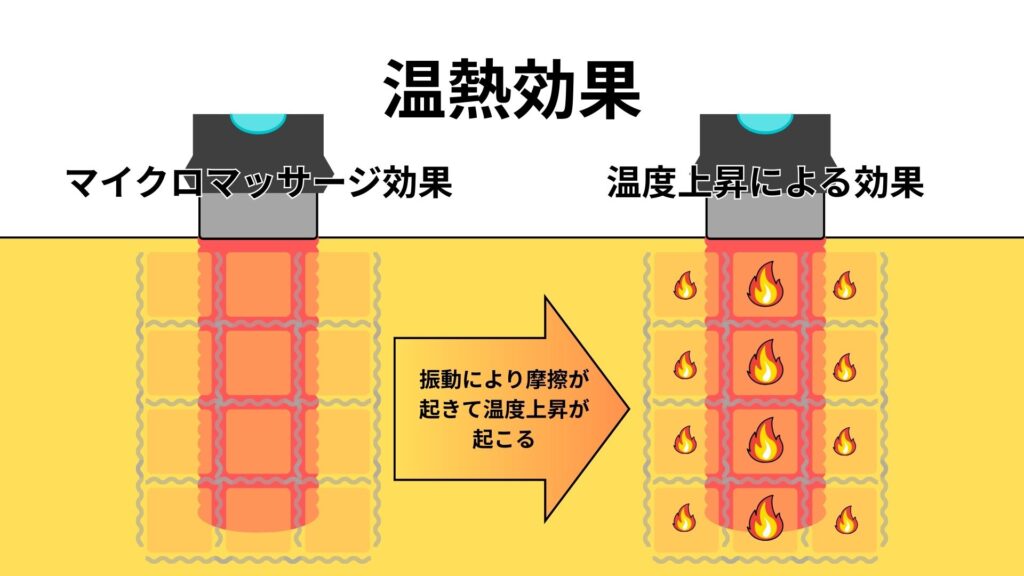 ⇒これにより❝超音波振動によるマイクロマッサージ効果❞と❝温度上昇による熱の効果❞を発揮する