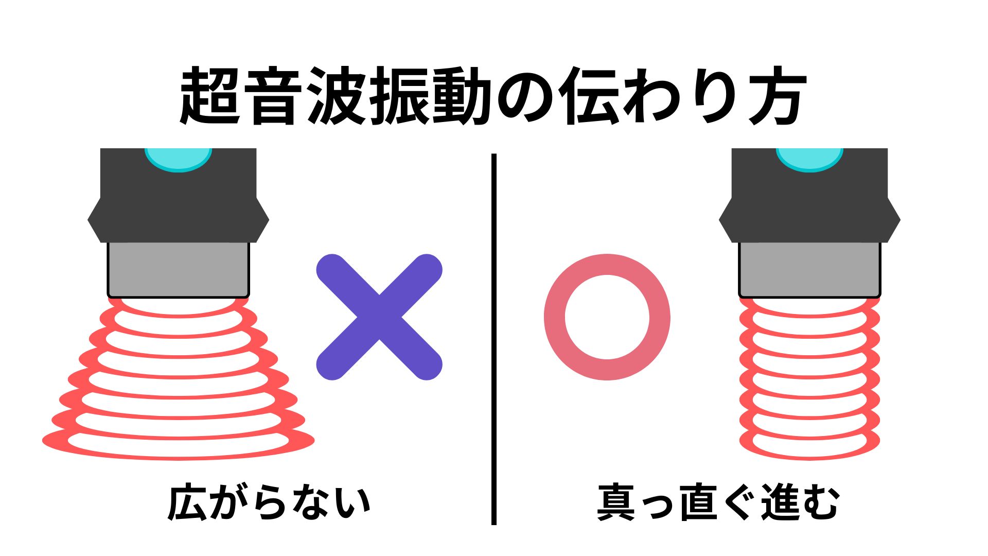 勘違いされやすいのが超音波振動は広がってかないという事です。